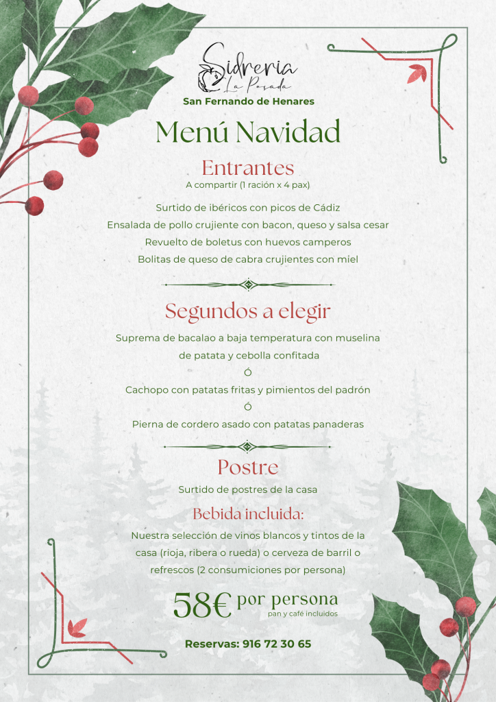 En Sidrería La Posada somos muy navideños y por ello hemos preparado unos menús especiales para que celebres la Navidad con tu mejor compañía ¡Haz tu reserva y no pierdas tu plaza!